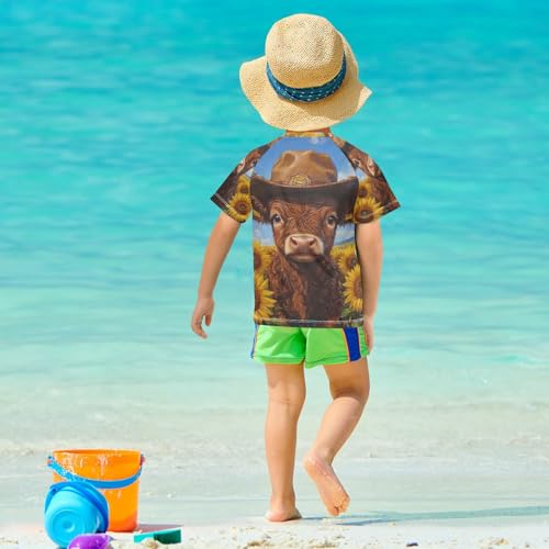 Boy Swimsuit Cowboy Hat Cow Sunflower Sunscreen T-Shirts Swimwear Sets UPF 50+ 4