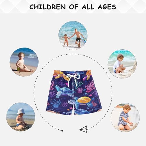 Pigsaly Boys Swim Trunks Colorful Turtles Underwater Purple Boys Board Shorts Swimsuit Swimwear Summer Bathing Suit 2T 3