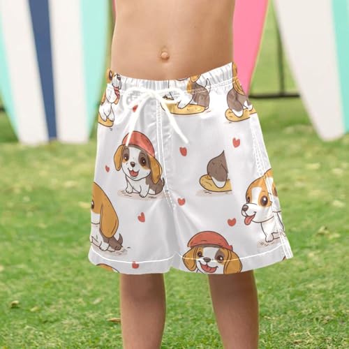 Pigsaly Boys Swim Trunks Red Heart Cute Beagle Puppy Dog Boys Board Shorts Swimsuit Swimwear Summer Bathing Suit 4T Multicolor 4