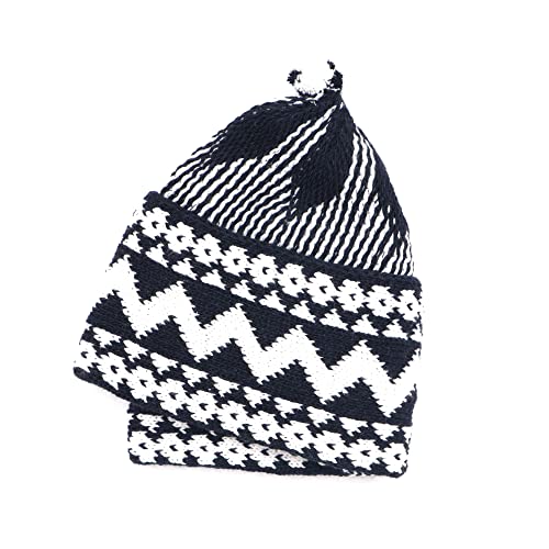 More information about TheKufi® Indigo Blue Cotton Blend Zigzag Beanie Kufi Hat with Ball on Top One-Size