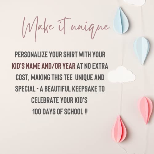• ✏️ Make it unique by customizing your shirt, shop our beautiful collection featuring our personalized 100 days of school shirt. Perfect for 100 days of school pictures on social media or beautiful 100 days of school gift ideas for kids.