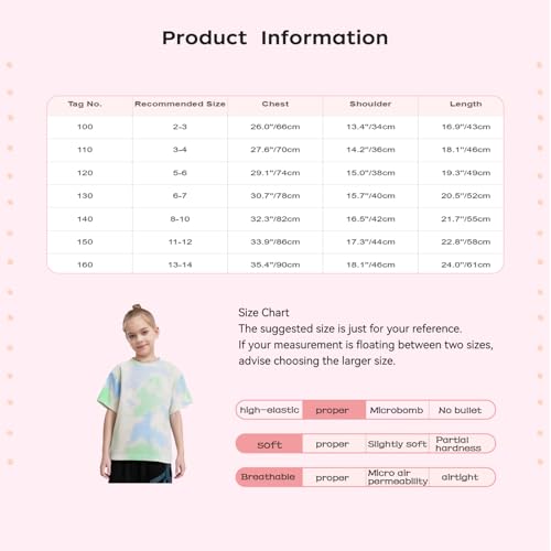 More information about TiaoBug Kids Girls Tie Dye Tee Shirts Short Sleeve Round Neck Casual Summer Shirts Tops Blouse Age 2-14 Years