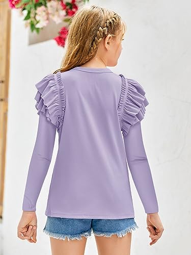 rrhss Girls Ruffle Long Sleeve Shirts Kids Cute Fitted Crew Neck Ribbed Knit Tops Clothes 5