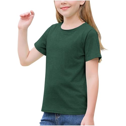 Girls Basic T-Shirts Tops Kids Fashion Solid Casual Round Neck Short Sleeve Summer Workout Athletic T Shirts Comfort 7