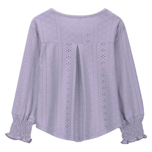 Girls Stylish Eyelet Embroidery Long Sleeve Shirts Teen Girls Dressy Casual Blouse Tunic Cute Vacation Tops Crewneck 6