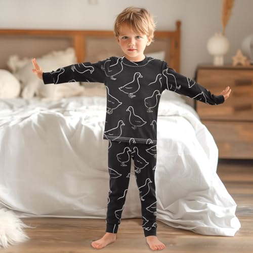 Pajama Sets Long Sleeve Black with Duck Soft Comfy Sleepwear 2 Piece PJS 3-8T 2