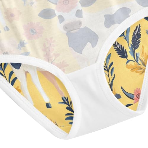 Wusikd Cows Flowers Girls' Underwear Cotton Boho Yellow Girls Briefs Soft Toddler Underwear 2T 4