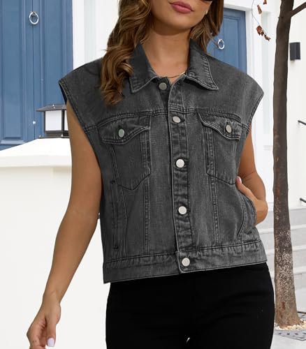 Womens Denim Jean Vest Classic Jean Vest Sleeveless Jackets with Pockets Button Down Jean Waistcoat Gilet 5