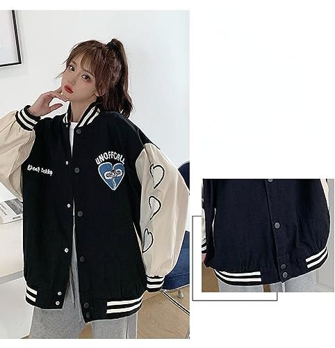 More information about Women Cute Vintage Varsity Jacket Kawaii Heart Print Hip Hop Bomber Jacket Y2K Japanese Korean Preppy Button Up Streetwear