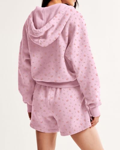 Cioatin Women Zip Up Crop Hoodies Jacket Loose Fit Fleece Sweatshirt Y2K Ditsy Floral Pullover Aesthetic Girls Clothes Fall 1