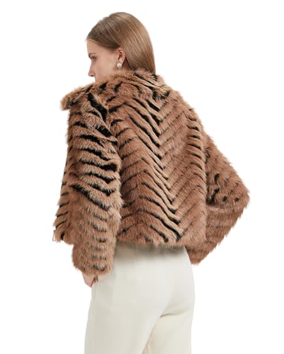 HOT ! GRAN ORIENTE Women Faux Fur Leopard Print Cropped Jacket,Fleece Fluffy Leather Lined Zip Up Coat