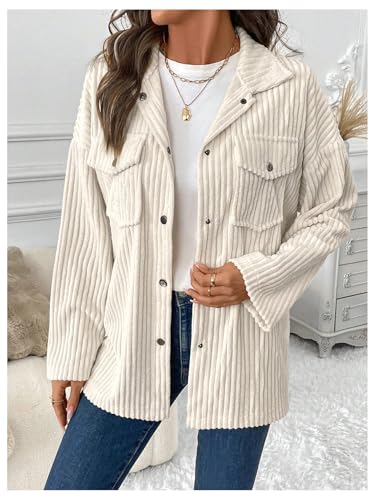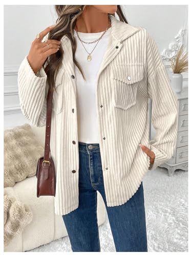 SOLY HUX Women's Corduroy Jacket Long Sleeve Button Front Flap Pocket Shacket Jacket Outerwear 1