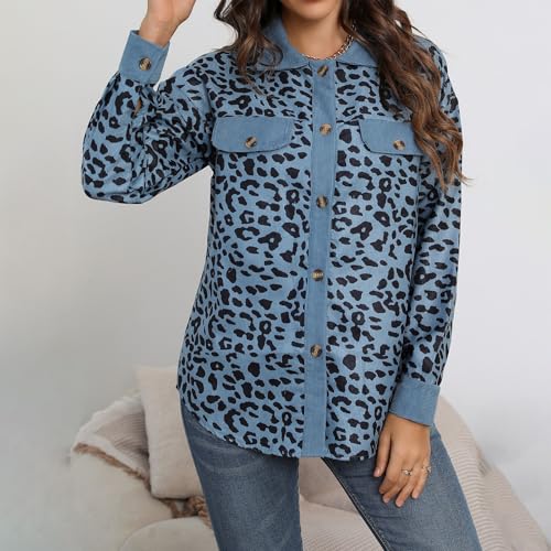 Mystery Boxes for Sale Unclaimed Cute Fall Jackets for Women Lightweight Jacket for Women Womens Button Down Shirts Long Sleeves Oversized Leopard Print Corduroy Shirts Long Lined Hoodie (Blue, S) Fr 5