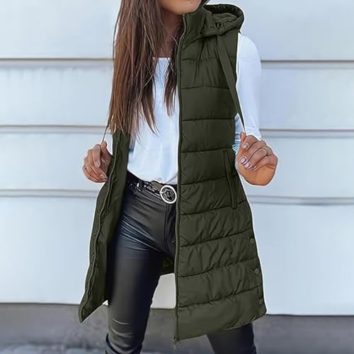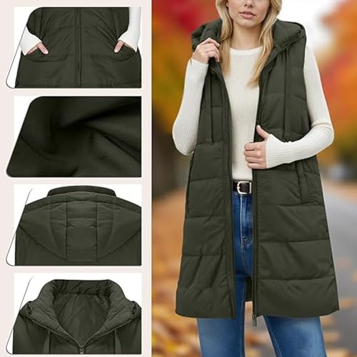 HOT ! Expturelmp Women Long Puffer Vest 2025 Winter Warm Quilted Sleeveless Vests Puffy Zip up Fall Coat Outerwear