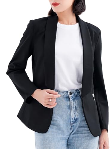 • Elevate your professional outfit with this chic open front blazer jacket for women, featuring an elegant shawl collar that exudes sophistication.