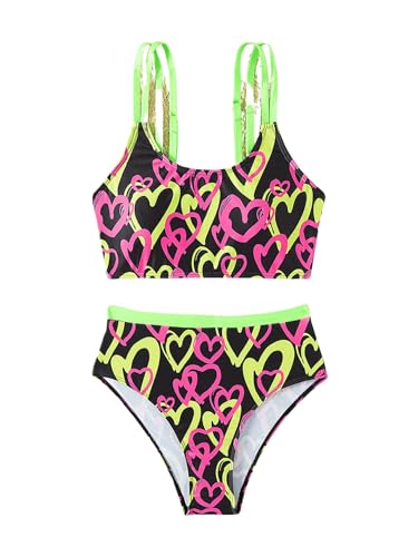 • Features: heart graphic print, sleeveless, spaghetti straps, high waisted, adjustable straps, 2 piece swimsuit for girls