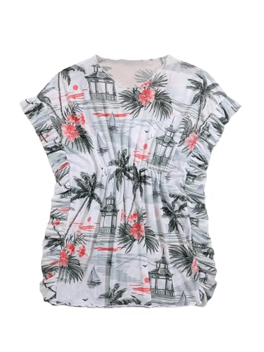 WDIRARA Girl's Tropical Print Short Sleeve Swimsuit Cover Up Dress Beach Swimwear Coverups 1