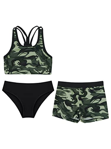 Jhaoyu Kids Girls 3 Piece Tankini Swimsuit Hawaiian Prints Race Back Tank Top with Bottom Shorts Bathing Suit Swimwear 3