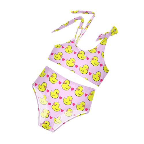 Wusikd Yellow Ducks Girls Swimsuits Two Piece Pink Heart Swimwear Bikini Set for for Girls Size 9-10 5