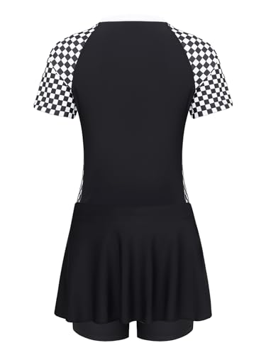 • A-line swim skirt prevents embarrassment. Checkerboard print make girl fashion and active