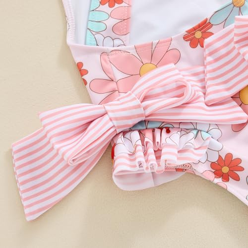 Toddler Girl One Piece Swimsuit Floral Sleeveless Backless Bowknot Bathing Suit Kids Girl Ruffled Swimwear Beachwear 4