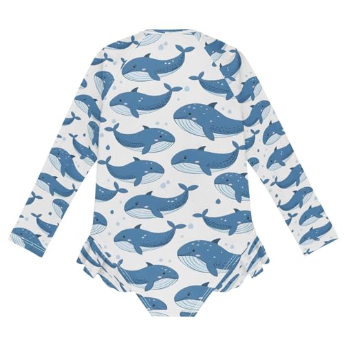 Cartoon Whale B Girls Long Sleeve Swimsuits One Piece Zipper Bathing Suit UPF 50+ Rashguard Swimwear 2