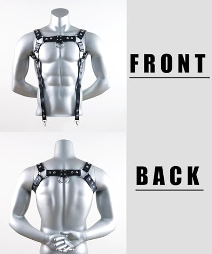 Fstrend Men's Chest Harness Suspenders Belt Black Leather Shoulder Strap Fashion Rave Body Accessory 4