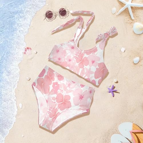 KLL Rose Pink Glitter Girls' 2 Piece Bikini Sets Quick-Dry Swimsuit Swimwear Adjustable Shoulder Strap 2