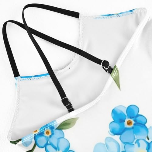 Girls One Piece Swimsuits Blue Forget-me-not Flowers Pattern Sport Halter Swimwear Beach Bathing Suit, 3T 4