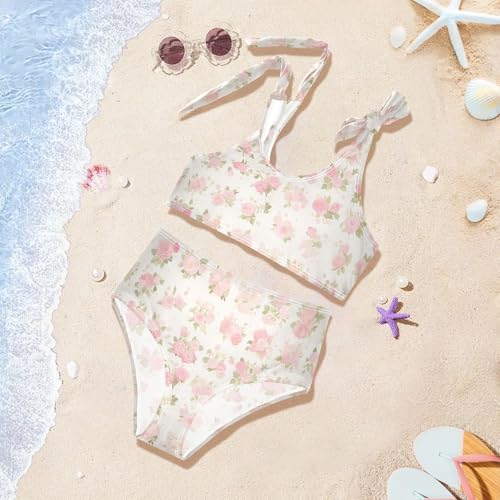 KLL Pink Roses Watercolor Floral Pattern Girl 2 Piece Bikini Set Beach Swimsuit Swimwear Adjustable Shoulder Strap 5