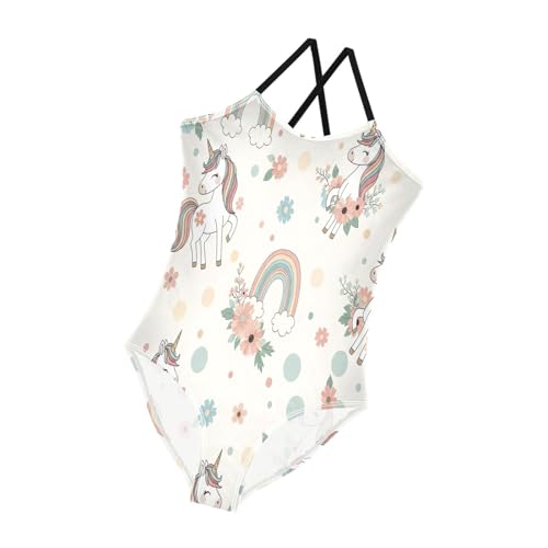 Unicorns Rainbow Manes Tails One Piece Girls Swimsuit with Adjustable Shoulder Strap, Beach Bathing Suits Girls, 3-10 5