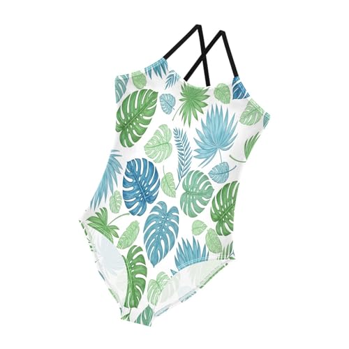 Girl Bathing Suits 3-10 Y Beach Swimsuit Girls, Lush Tropical Leaves Blue Green 3