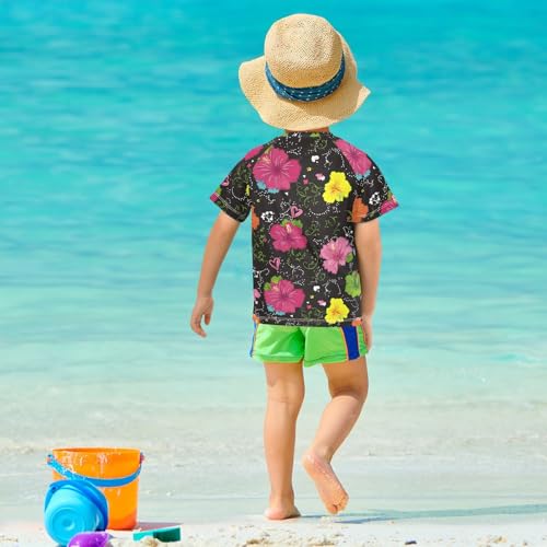 ALAZA Kids Rash Guard Girls Toddler Swim Shirts Short Sleeve Colorful Hibiscus Flower UPF 50+ 3T 1