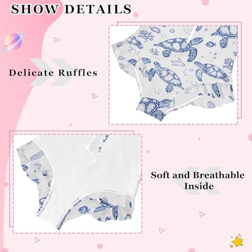 Sea Turtle Pattern Girls Long Sleeve Swimsuit Rash Guard One Piece Bathing Suits Zipper 3-12T 7