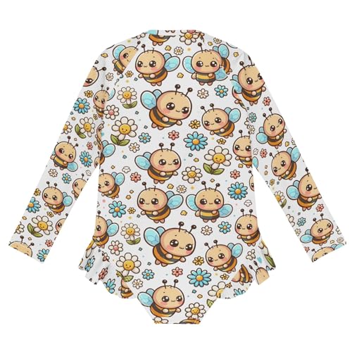 Cute Cartoon Little Bee Girls Long Sleeve Swimsuit Rash Guard One Piece Bathing Suits Zipper 3-12T 3