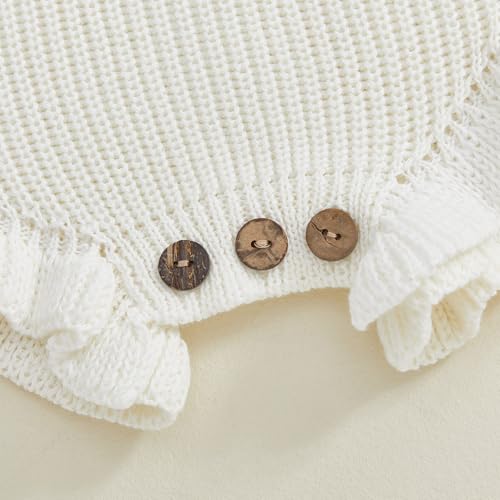 Newborn Baby Girl Sweater Romper Chunky Knit Jumper Solid Ruffle Long Sleeve Bodysuit Cute Infant Fall Winter Clothes 6