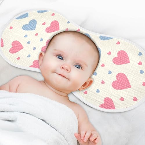 HOT ! Baby Burp Cloths, Soft Absorbent Burping Cloths for Babies, Cotton Milk Spit Up Rags, Large Size for Newborns, Baby Boys and Girls (Striped Heart Cream)