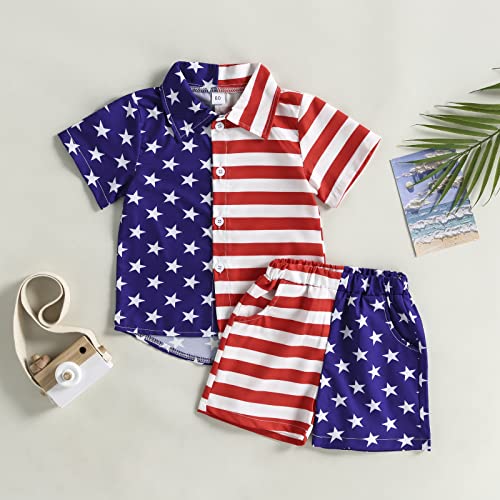 Kuriozud Toddler Baby Boy 4th July/Halloween/Christmas Outfits Button Down Shirt+ Short Pants Set Festivel Clothes 2