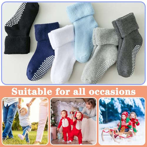 6 Pairs Toddler Non Slip Socks with Grippers Winter Thick Warm Cozy Crew Socks for Baby Kids 6
