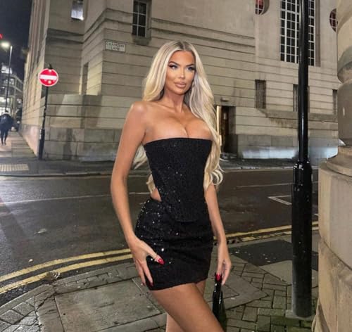 • SEXY DESIGN:This 2 piece outfits set features a strapless top and a mini skirt adorned with shimmering sequins,zipper closure,perfect for making a statement at any event. The sequin detail adds a touch of glamour and elegance to your look