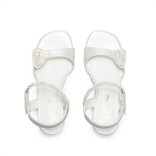 DREAM PAIRS Girls Sandals Ankle Strap Square Toe Low Heel Crystal Shell Wedding Party Flower Dress Shoes for Little Kids/Big Kids 4