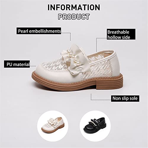 Girls School Uniform Loafer Flats Kids Leather Dress Shoes Pearl Mary Jane Slip On Sandals for Toddler Girls 4