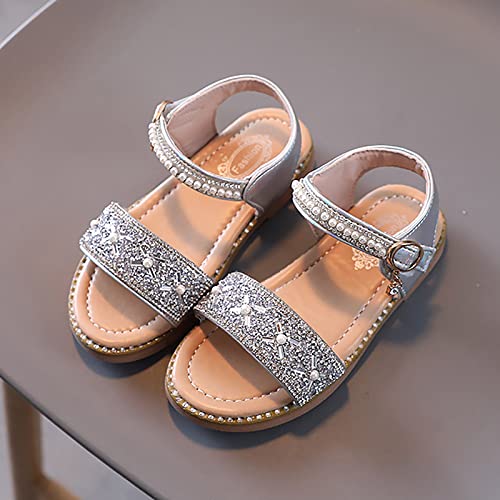 EnJoCho Girls Sandals Open Toe Rhinestone Princess Dress Flat Shoes Summer Sandals for Toddler Girls Sandals 1-11Years 5