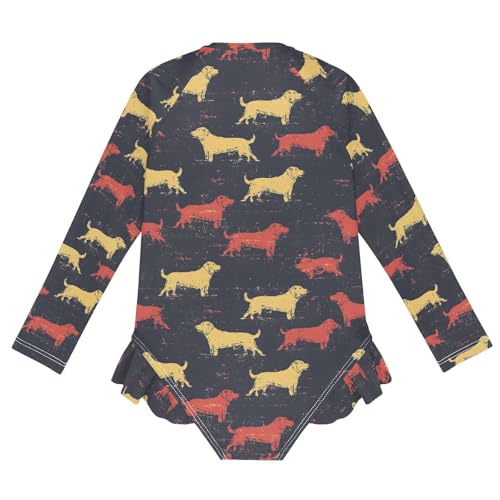 ALAZA Retro Puppy Dog Vintage Girls One Piece Swimsuit Long Sleeve Rash Guard Swimsuits UV 50+ Swimwear Zipper 1