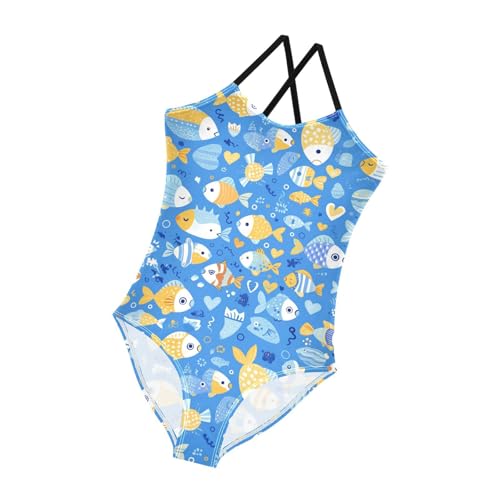 KLL Cartoon Fish Boy Blue Girl 1 Piece Swimsuits Beach Swimwear Adjustable Strap UPF 50+ 1