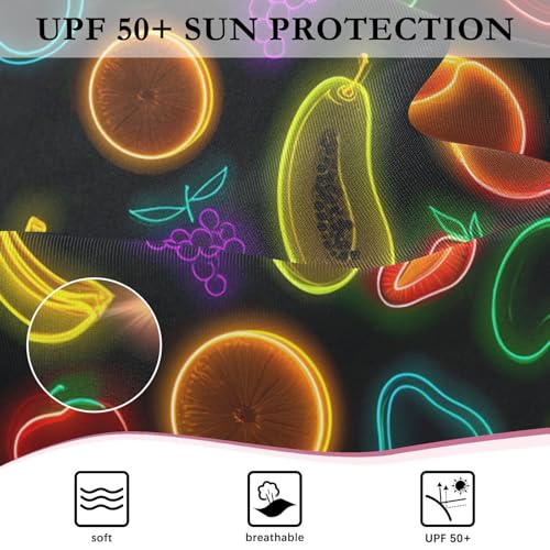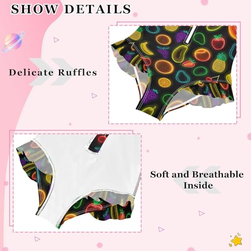 ALAZA Funny Fruit Cherry Lemon Neon Girls One Piece Swimsuit Long Sleeve Rash Guard Swimsuits UV 50+ Swimwear Zipper 7
