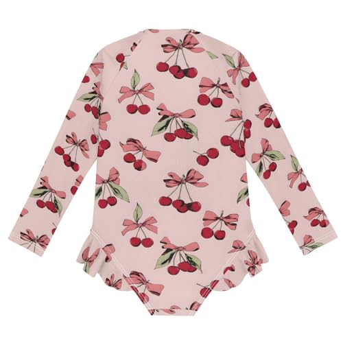 ALAZA Cherry Bow Lovely Girls One Piece Swimsuit Long Sleeve Rash Guard Swimsuits UV 50+ Swimwear Zipper 1