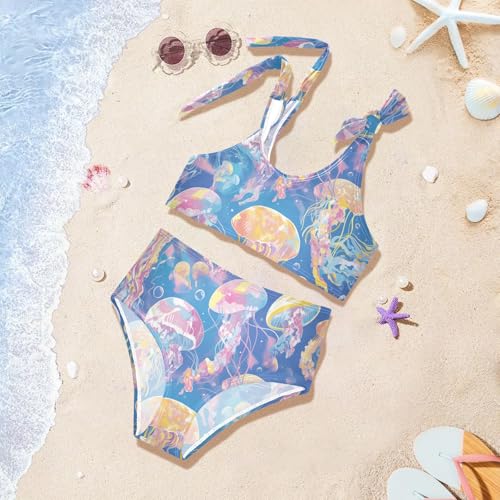 Colorful Jellyfish Girls Two Piecing Kids Bikini Set Scoop Neck Bathing Suit Swimwear Adjustable Strap 5