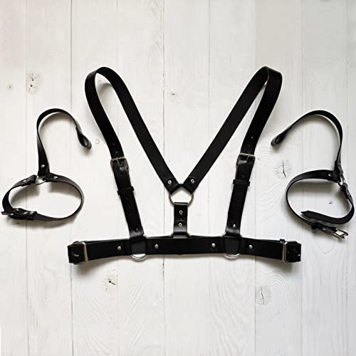 • Show Off Your Masculinity: This masculine looking body harness can be worn over a t-shirt, shirt or no shirt, matching different looks, showing off your figure and making you look very sexy and fashionable. Your woman or man will not be able to take her or his eyes off you when your attractive body is wrapped in this leather-like material harness.