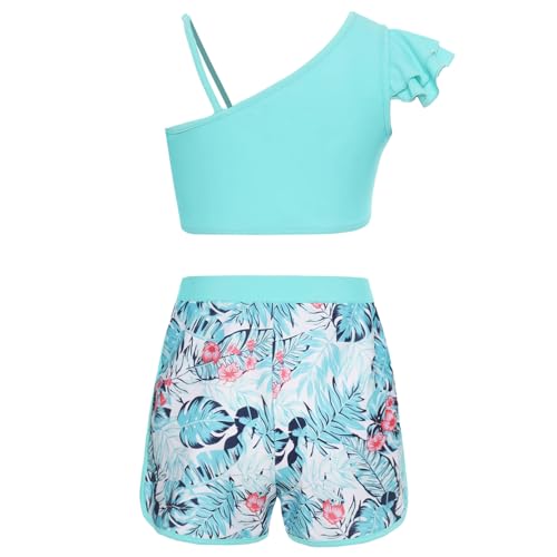 Moily Kids Girls 3PCS Athletic Rash Guards UPF 50+ Swim Coat Tankini Top with Bottoms Swimsuits 7